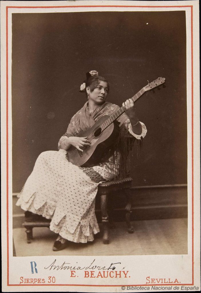 Respecto a la mujer guitarrista de la última fotografía, Antonia Loreto, en realidad, su nombre probablemente fuera Antonia Leyton de las Heras por una confusión con su apellido. Perteneciente a una saga familiar de artistas, probablemente prima hermana de Manuel Torre, de acuerdo con Estévez.