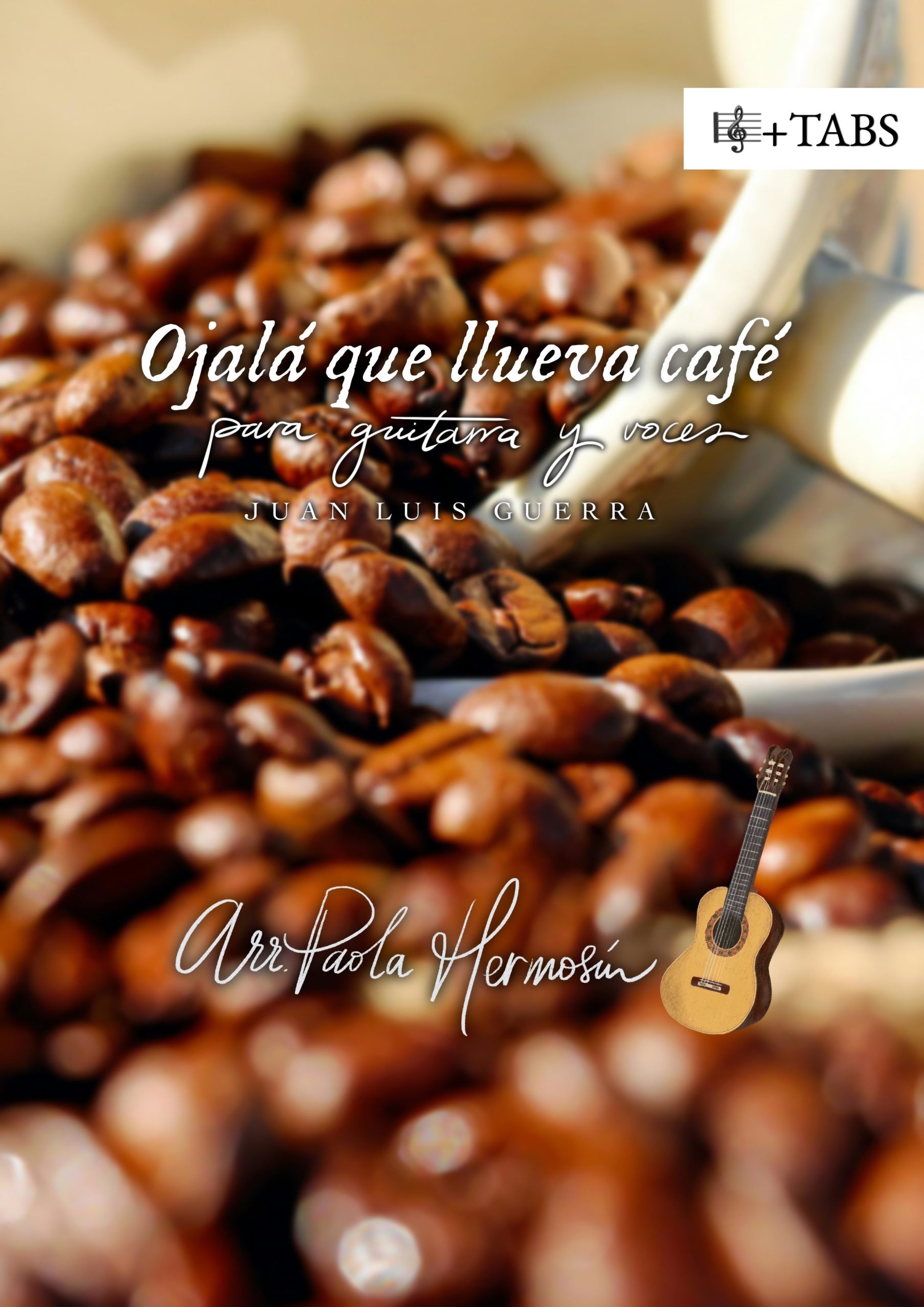 Partituras y tablaturas en PDF de mi arreglo para guitarra sobre el precioso tema del gran Juan Luis Guerra, Ojalá que llueva café, con sus melodías más bonitas y populares, para una sola guitarra, con coro de voces y maracas.
